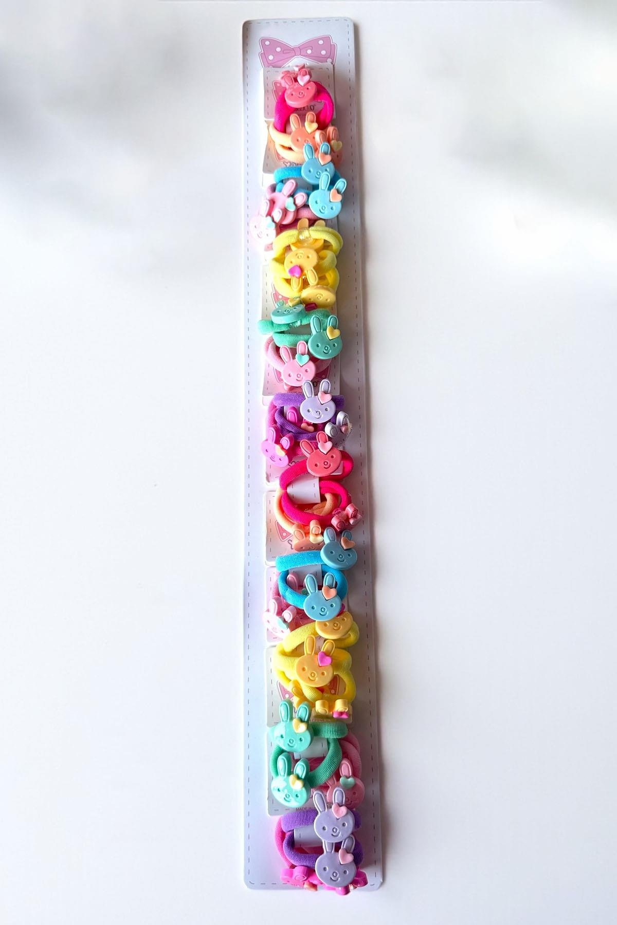 10'lu Karışık Renk Tavşan Figürlü Lastik Toka Set
