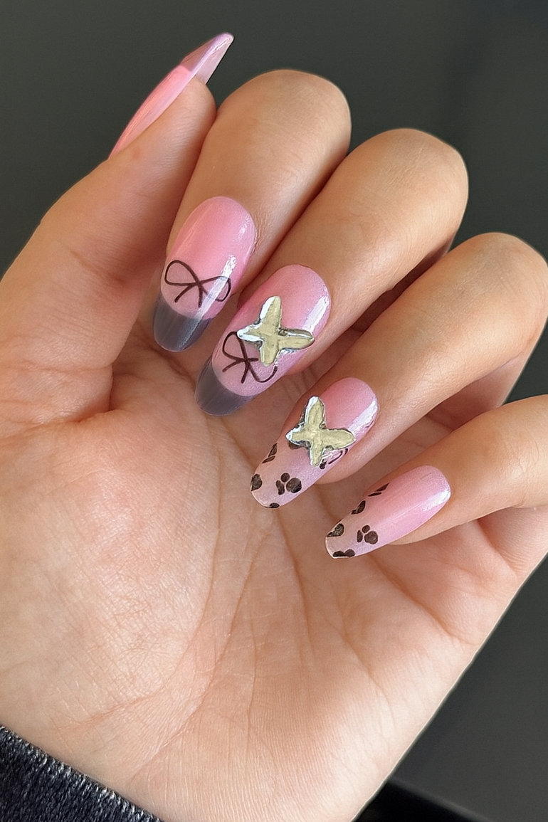 10'lu Pembe Renk Taş Detaylı Takma Tırnak Set (Yapıştırıcılı)