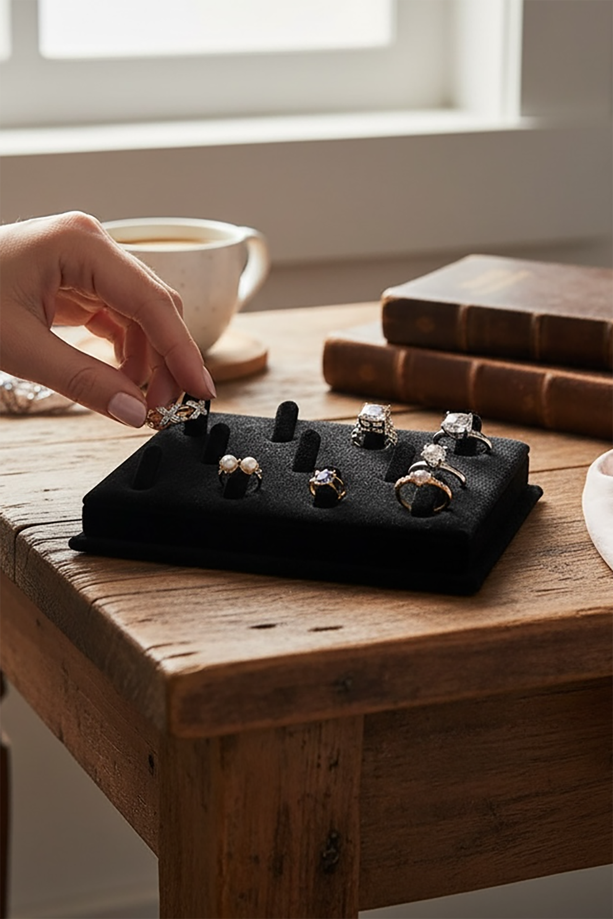 11'li Siyah Renk Takı / Yüzük Organizeri