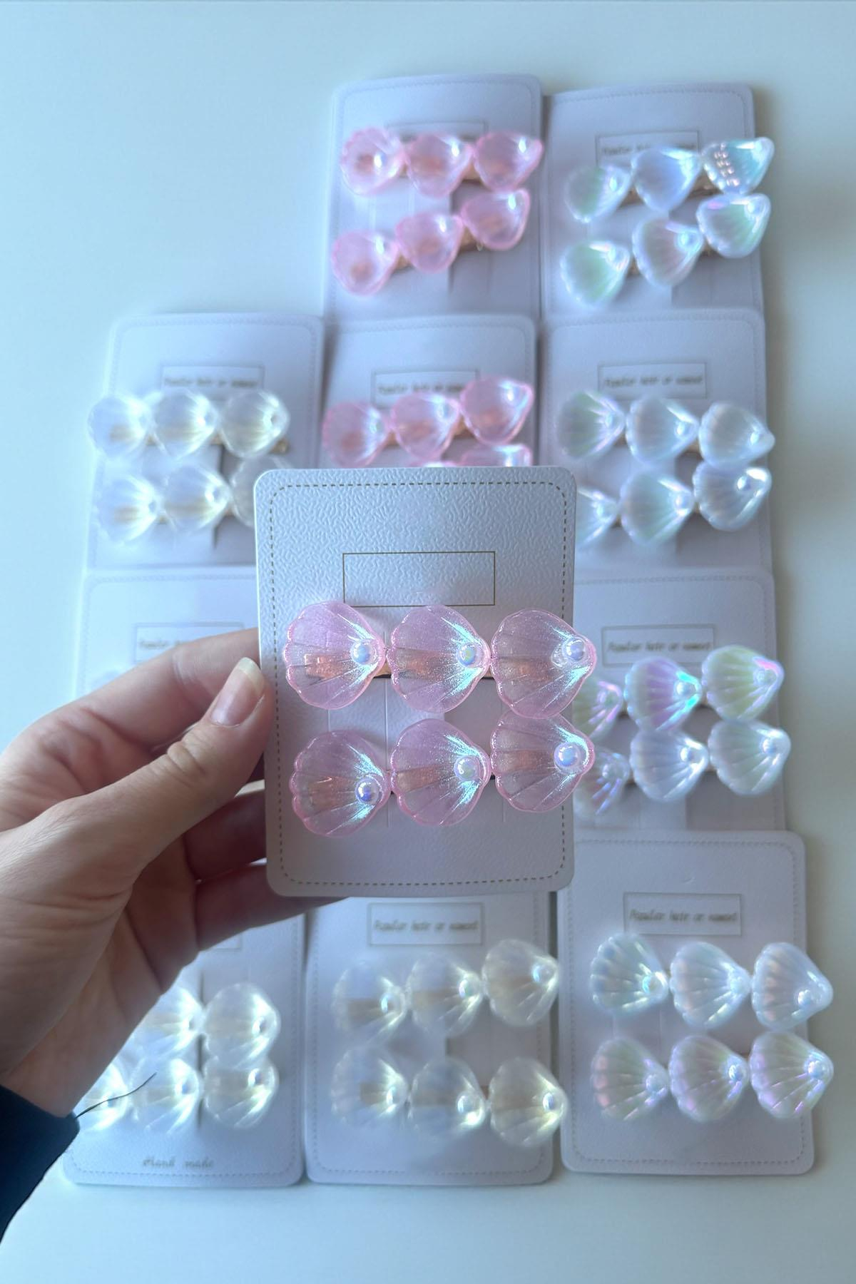 12'li Karışık Renk Deniz Kabuğu Ve İnci Detaylı Yan Toka Set
