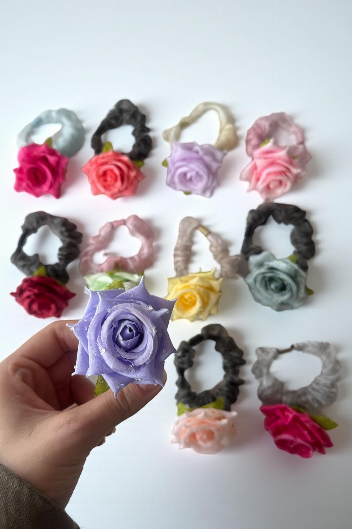 12'li Karışık Renk Gül Figürlü Lastik Toka Set