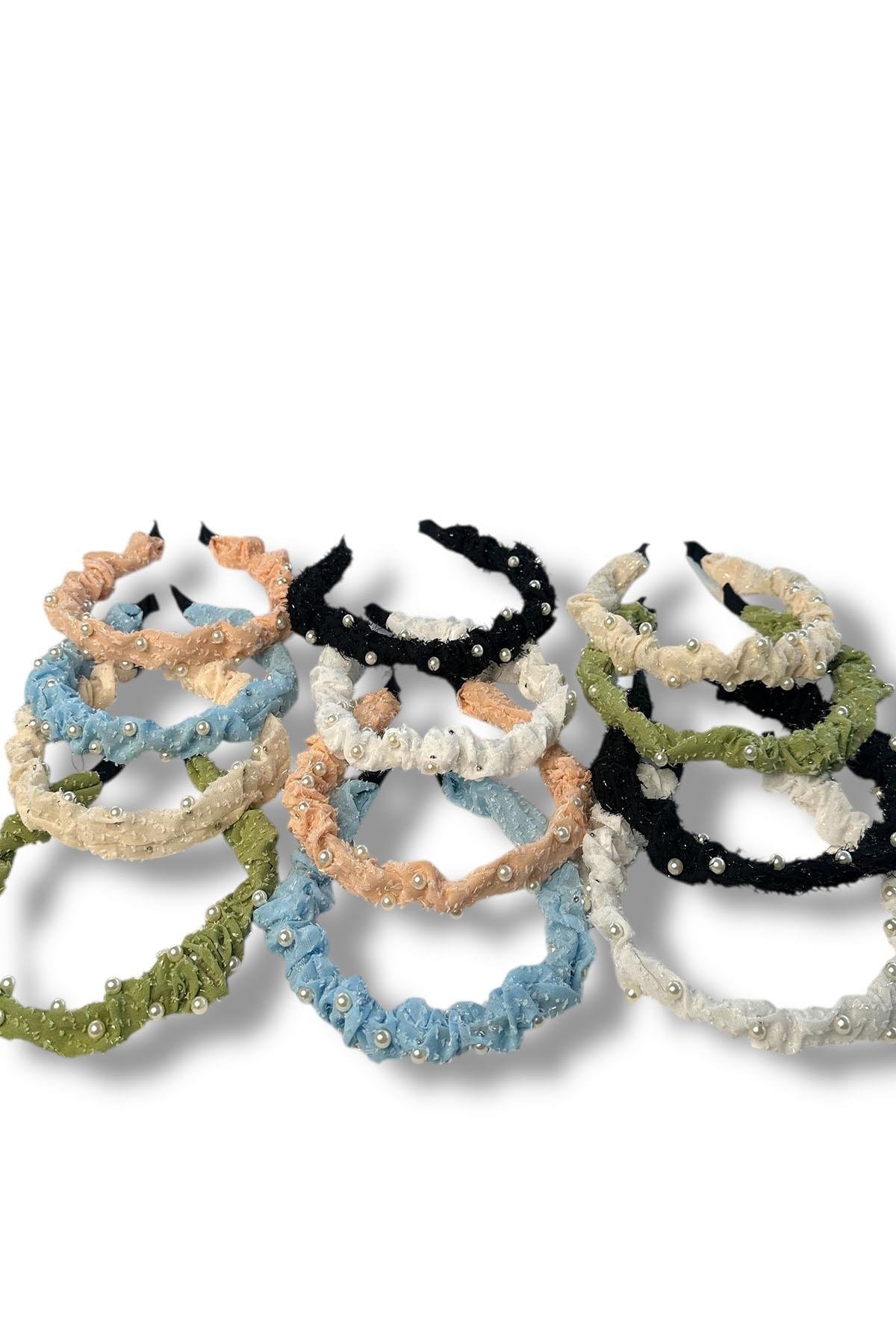 12´li Karışık Renk İnci Detaylı Taç Set