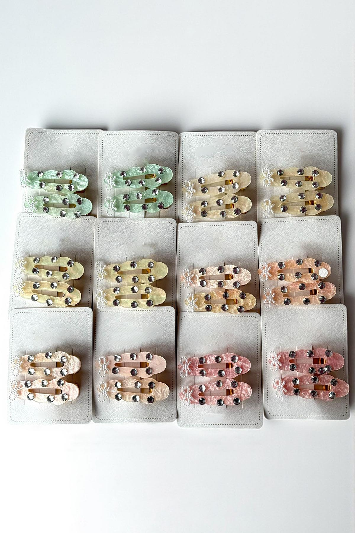12'li Karışık Renk Taş Detaylı Yan Toka Set