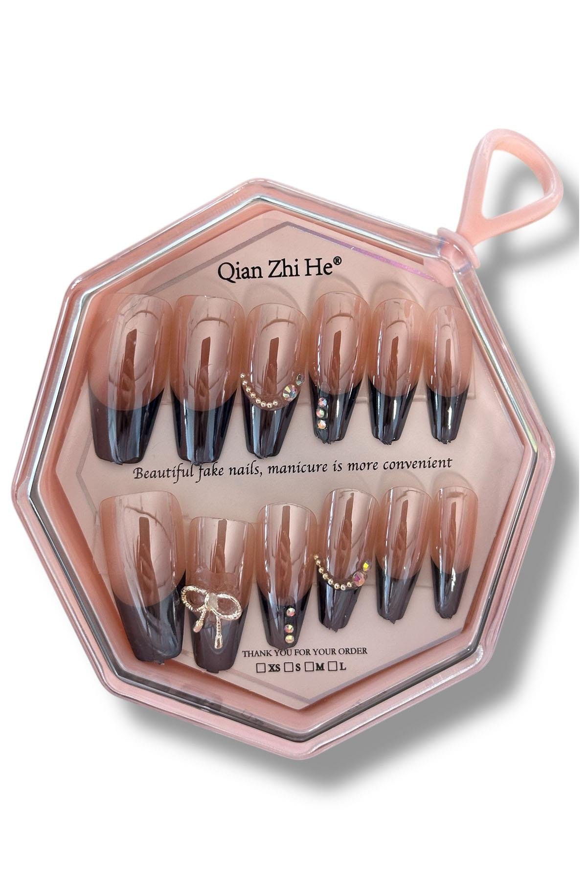 Zarif ve kendinden cilalı takma tırnaklar, etkileyici bir görünüm sağlar.