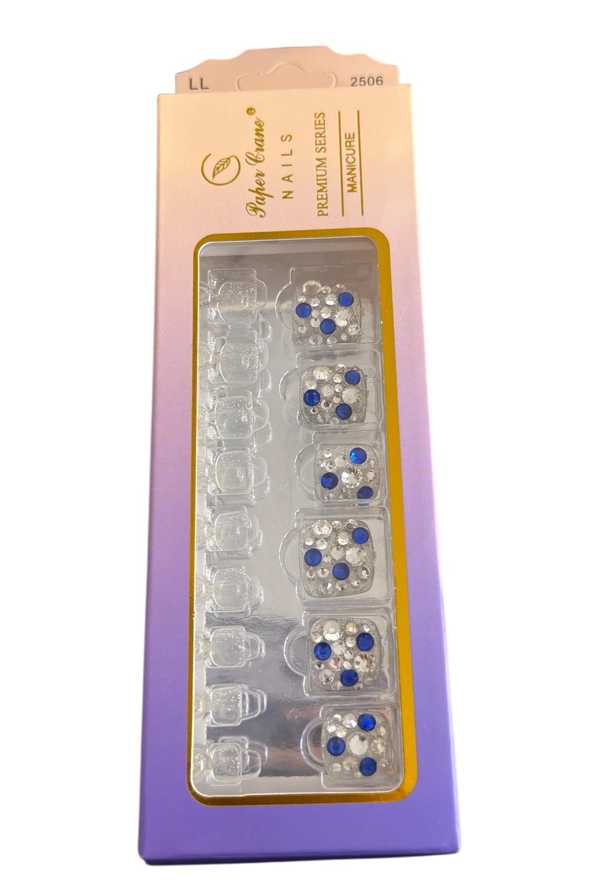24 Adet Mavi Renk Taş Detaylı Ayak Takma Tırnak (Yapıştırıcılı)