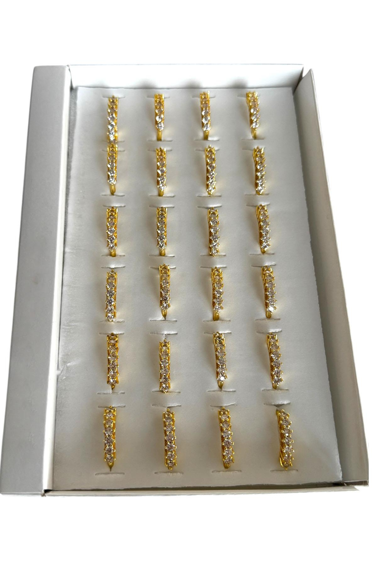 24'lü Altın Renk Beştaş Detaylı Yüzük Set
