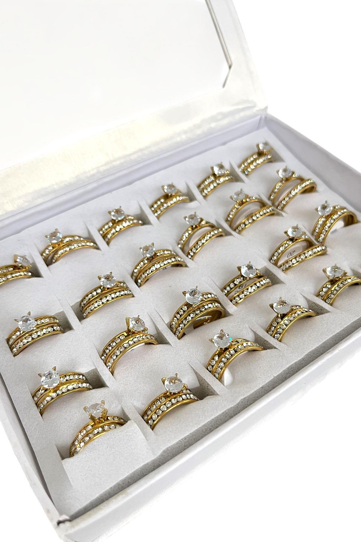 24'lü Altın Renk Çelik Numaralı Tektaş Alyans Set