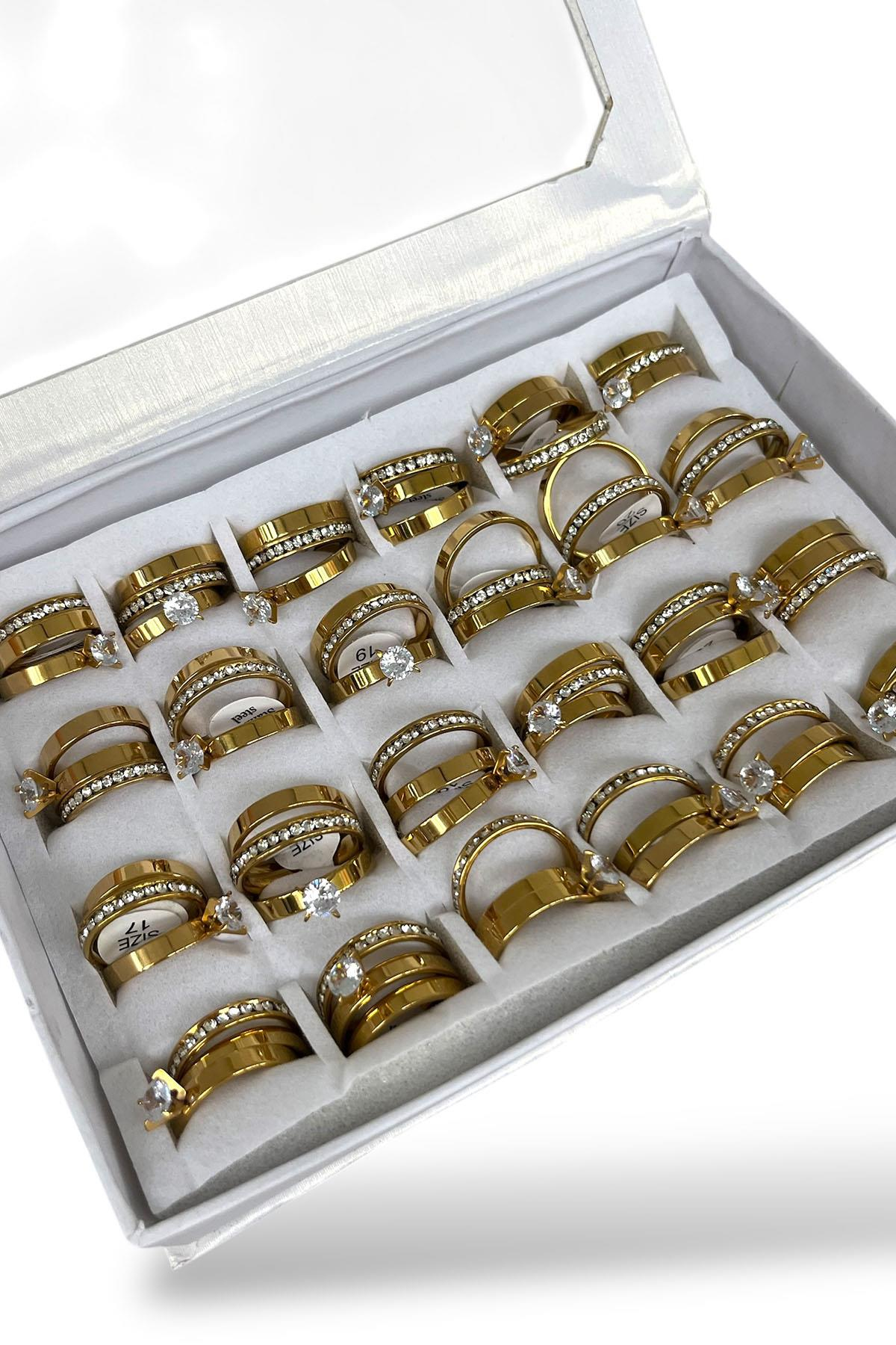 24'lü Altın Renk Çelik Numaralı Tektaş Alyans Set