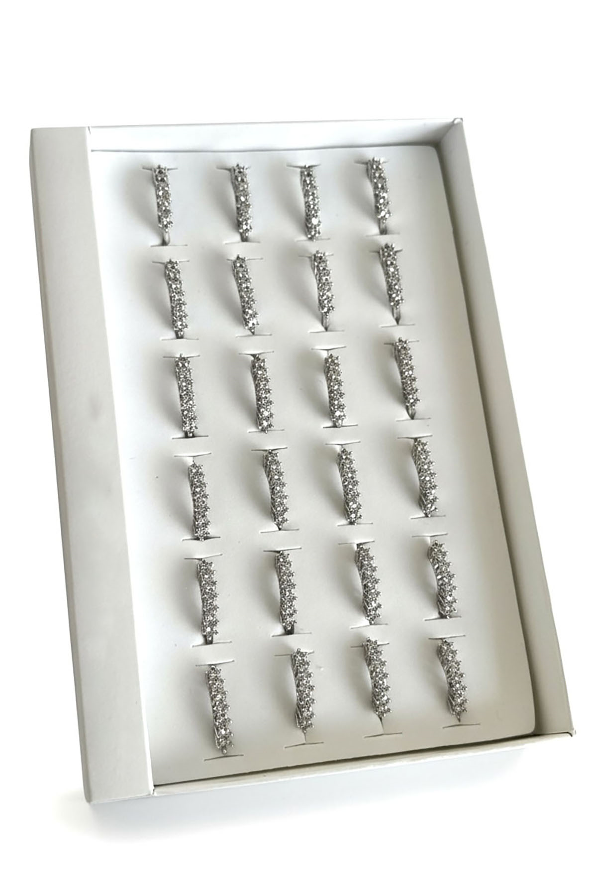 24'lü Gümüş Renk Beş Taş Detaylı Yüzük Set