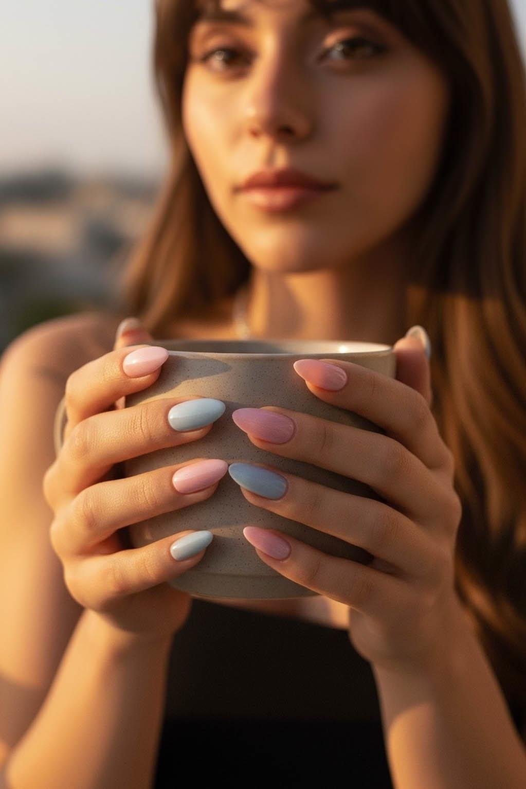 24'lü Pembe Ve Mavi Renk Takma Tırnak Set (Yapıştırıcılı)