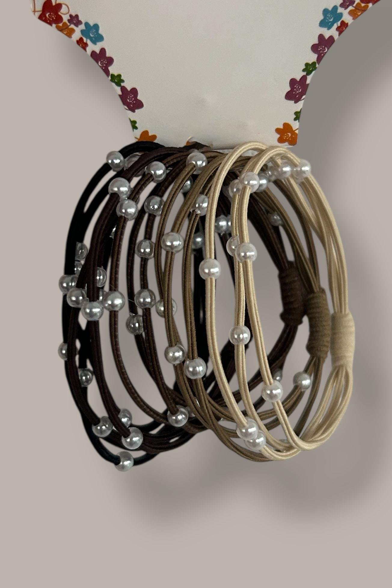 5'li Karışık Renk İnci Detaylı Lastik Toka Set