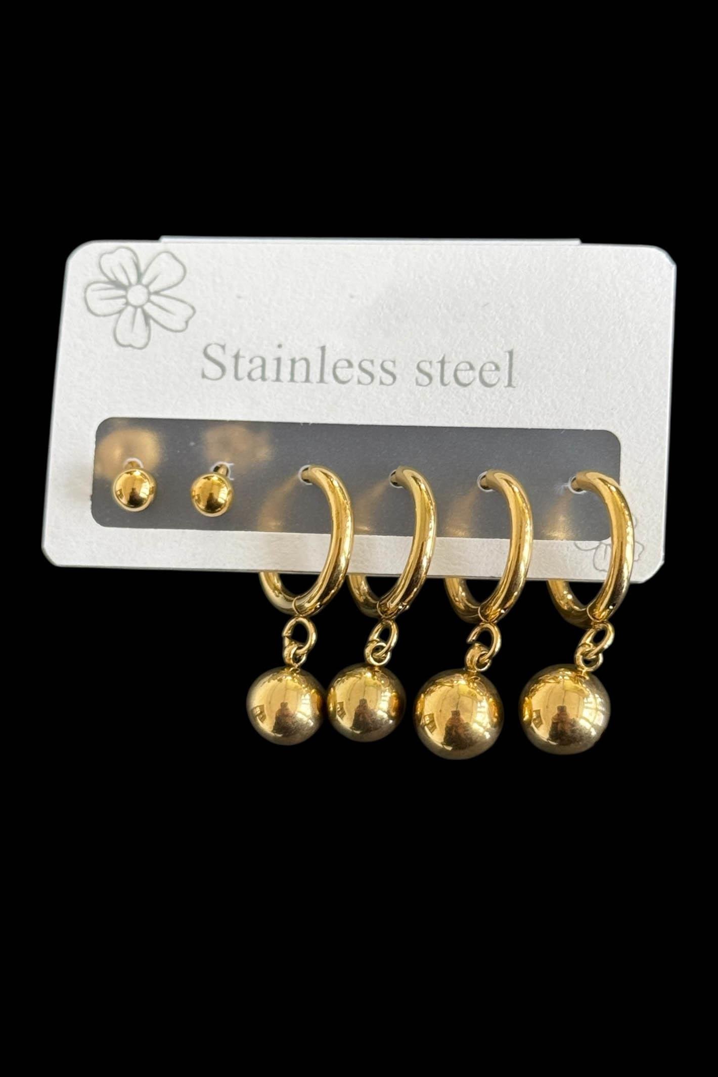 6'lı Altın Renk Çelik Küpe Set