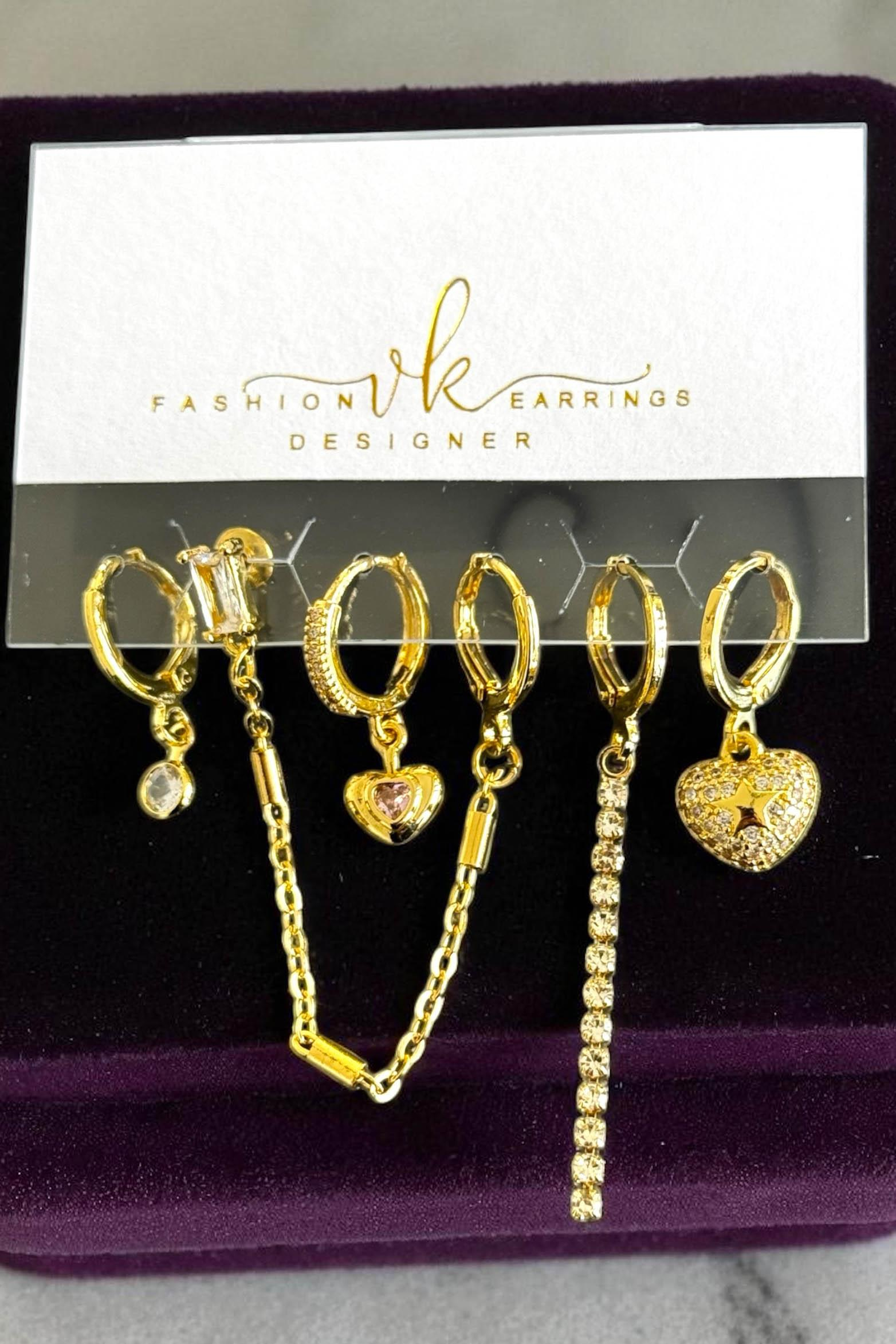 6'lı Altın Renk Taş Detaylı Küpe Set