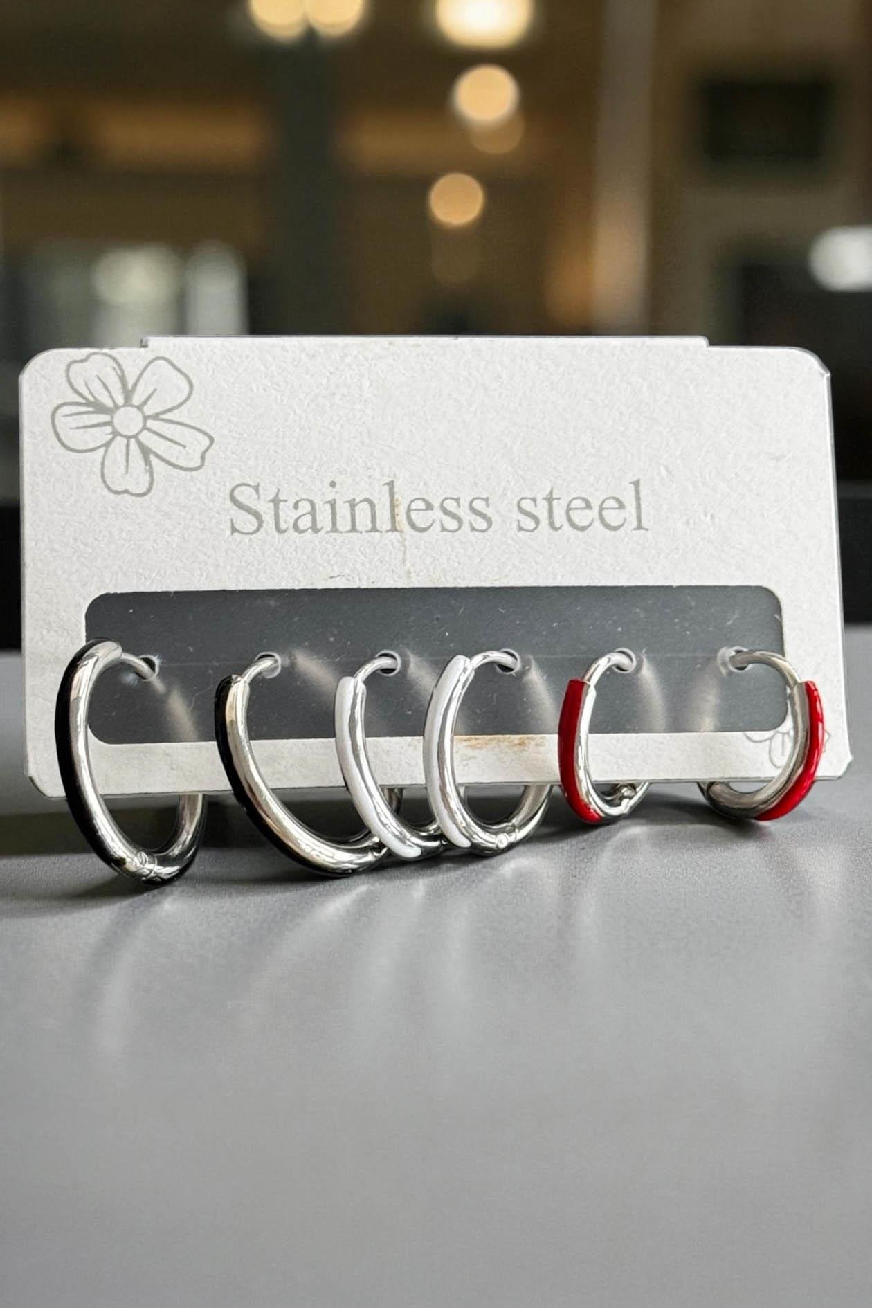 6'lı Gümüş Renk Çelik Halka Küpe Set