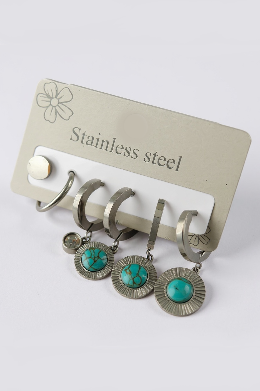 6'lı Gümüş Renk Taş Detaylı Çelik Küpe Set