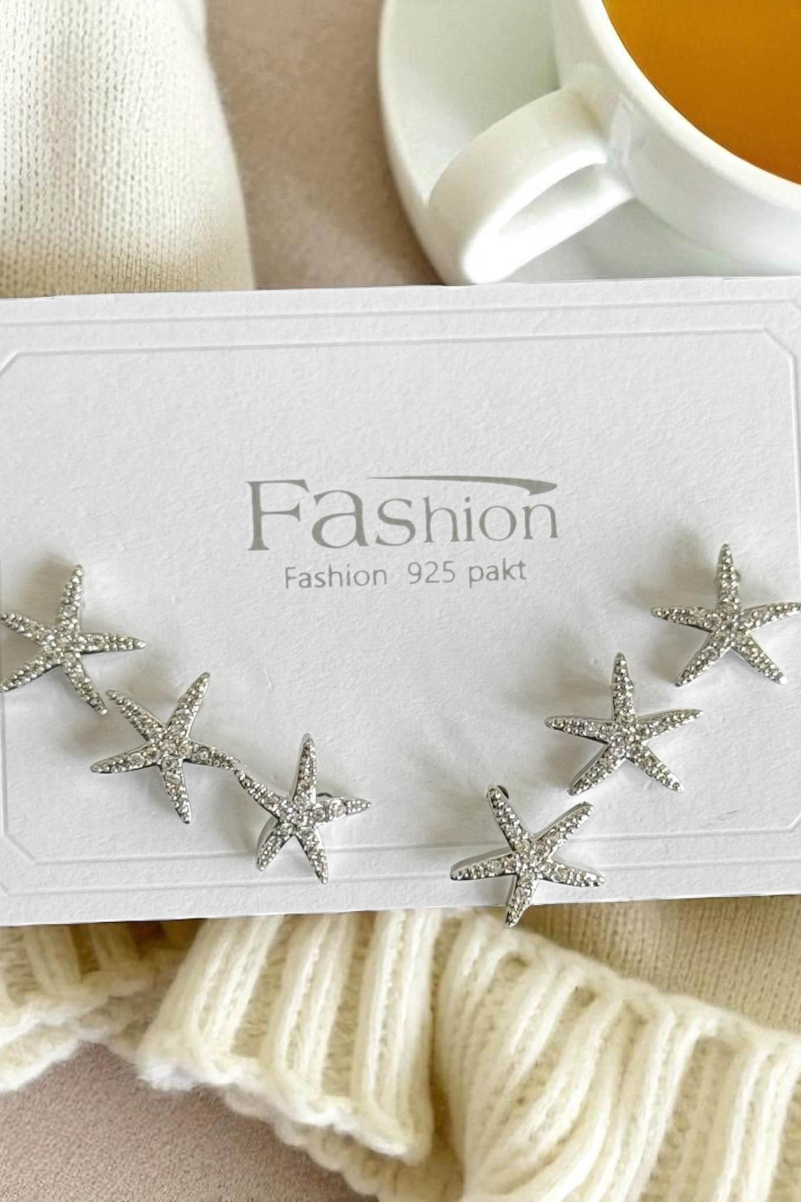 6'lı Gümüş Renk Yıldız Figürlü Küpe Set