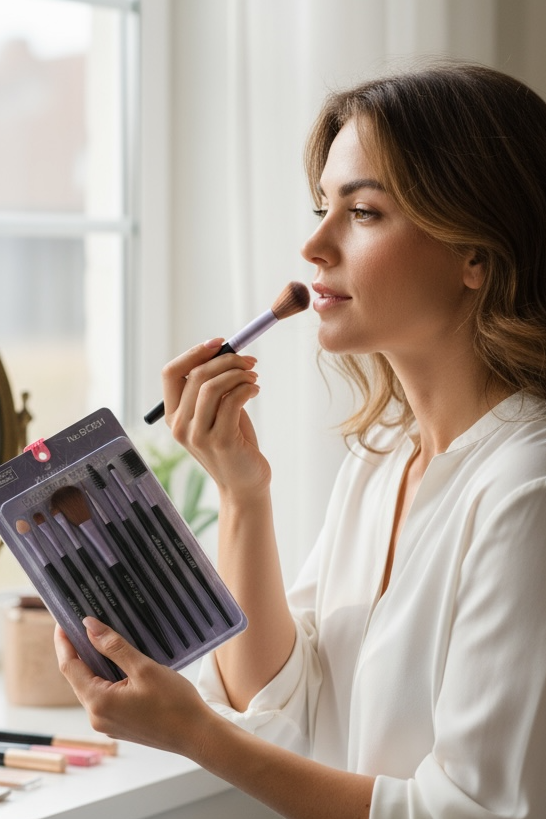 8'li Mor Ve Siyah Renk Makyaj Fırçası Set