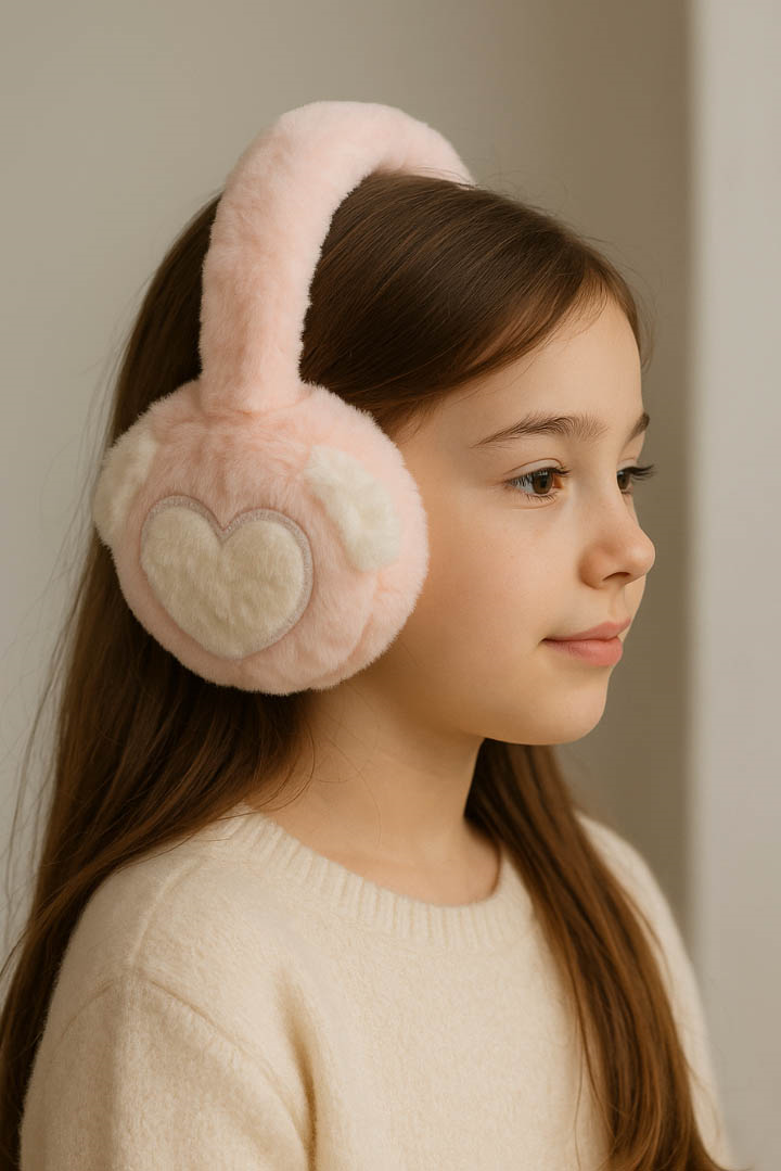Açık Pembe Renk Kalp Figürlü Peluş Kulaklık