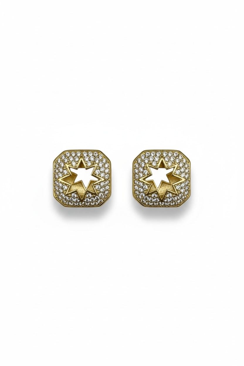 Altın Renk 14K Altın Kaplama Kuzey Yıldızı Detaylı Küpe (Çift)