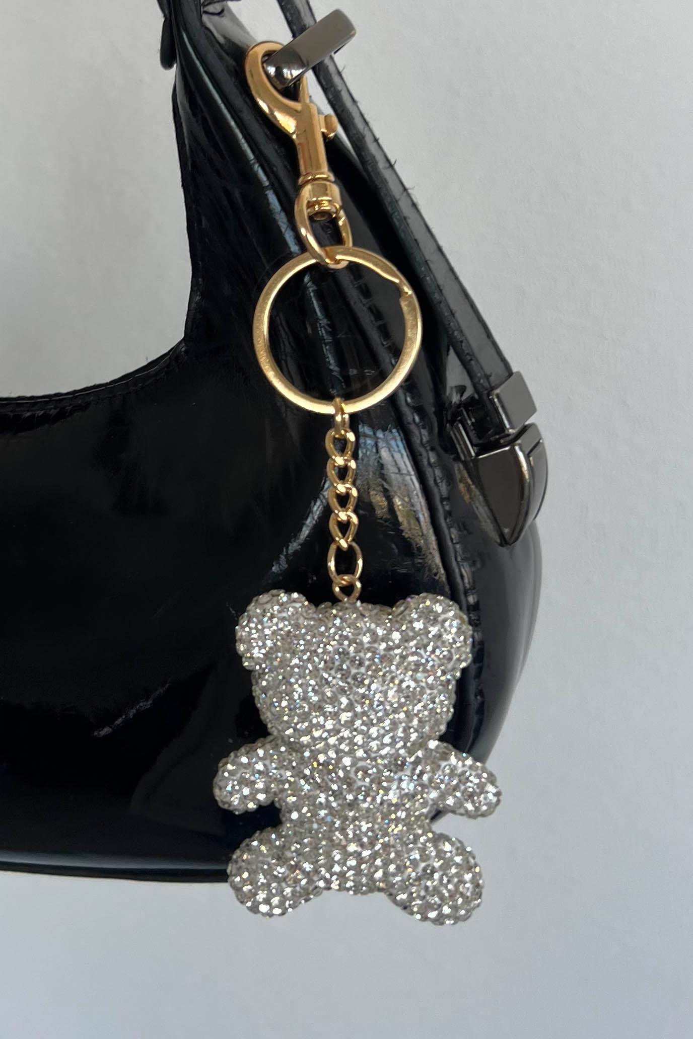 Altın Renk Ayıcık Figürlü Gümüş Renk Taş Detaylı Çanta Charm/ Anahtarlık