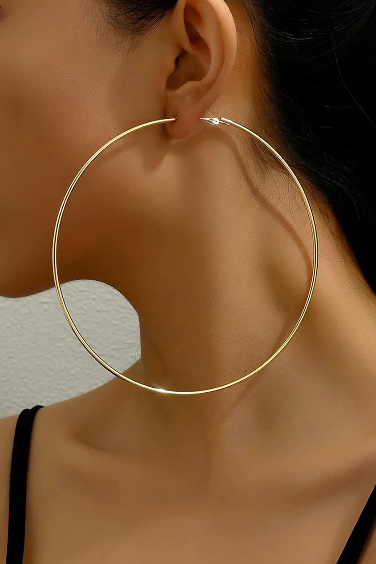 Altın Renk Çelik Halka Küpe 100Mm (Çift)