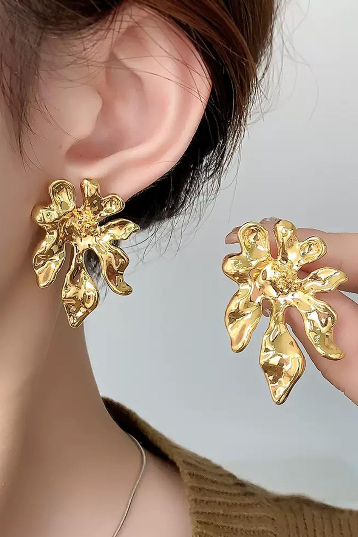 Altın Renk Çiçek Figürlü Küpe (Çift)