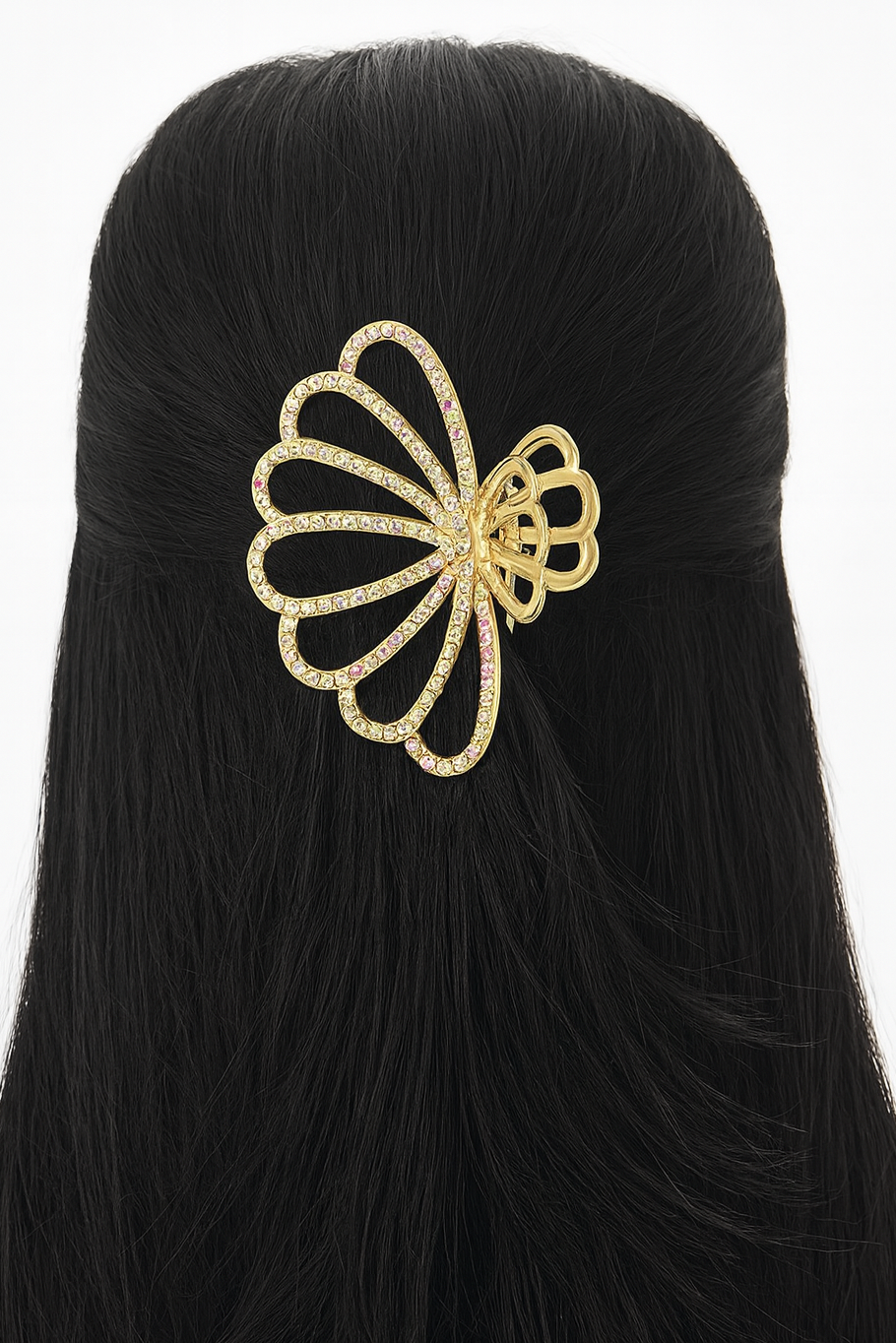 Altın Renk Deniz Kabuğu Figürlü Hologramlı Taşlı Metal Mandal Toka