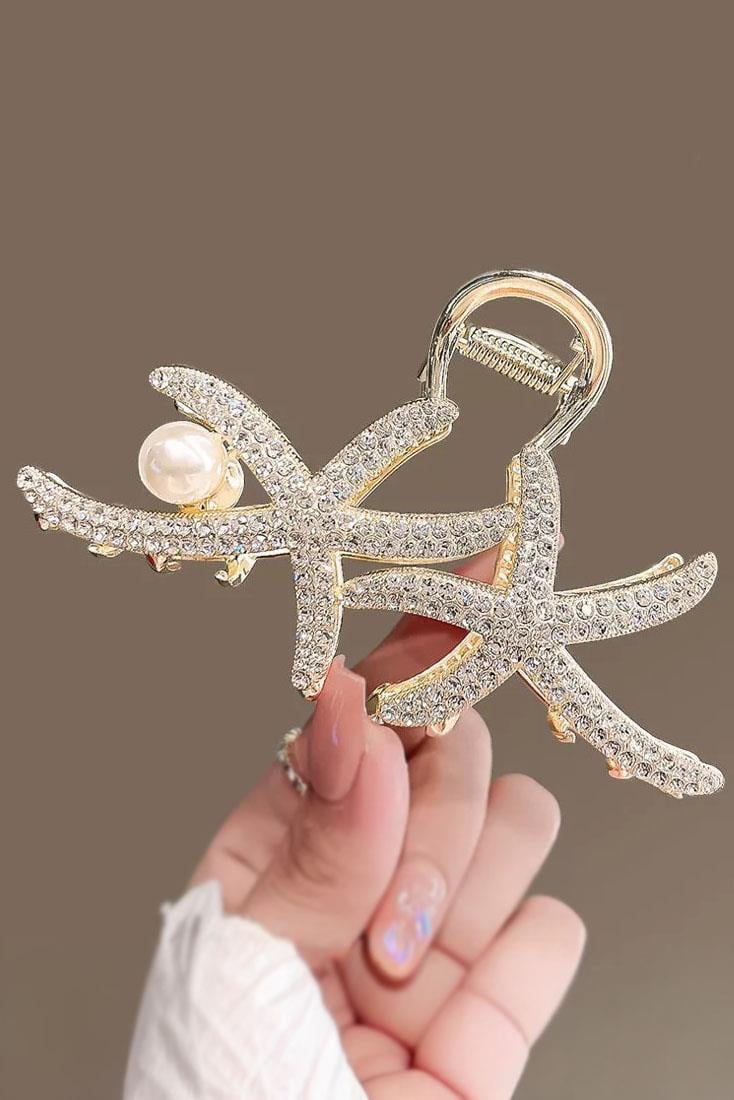 Altın Renk Deniz Yıldızı Figürlü İnci Detaylı Taşlı Metal Mandal Toka