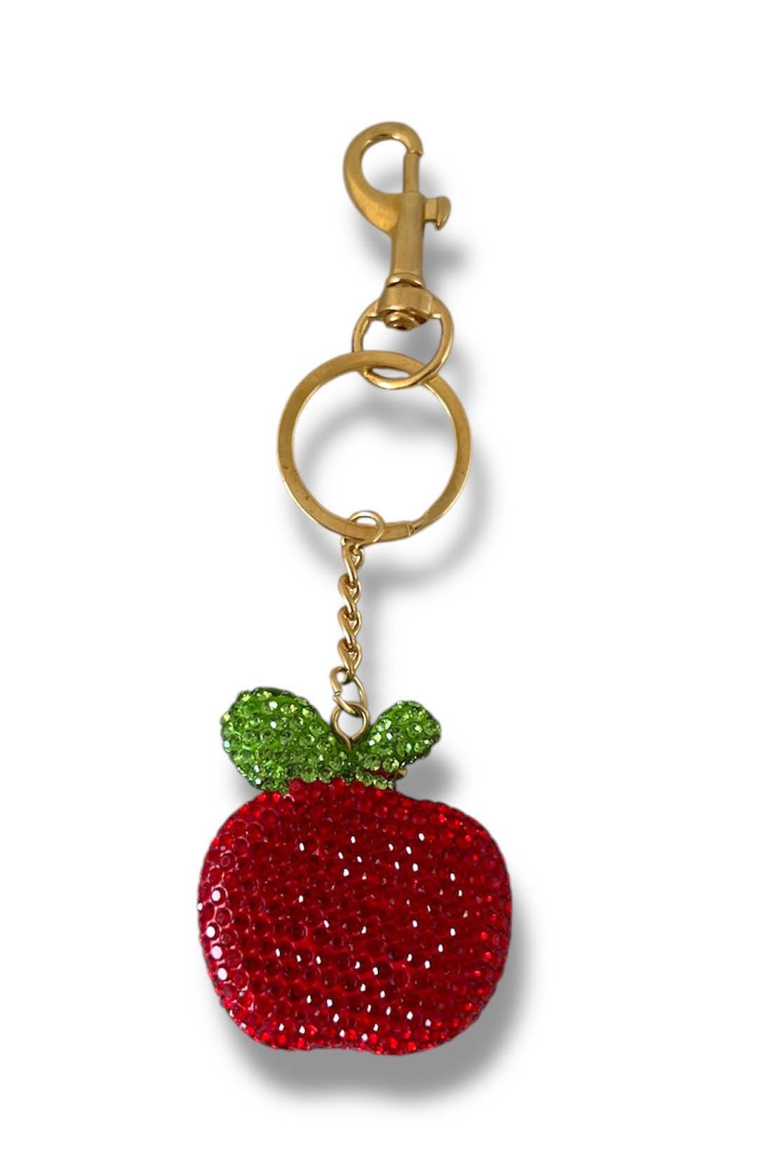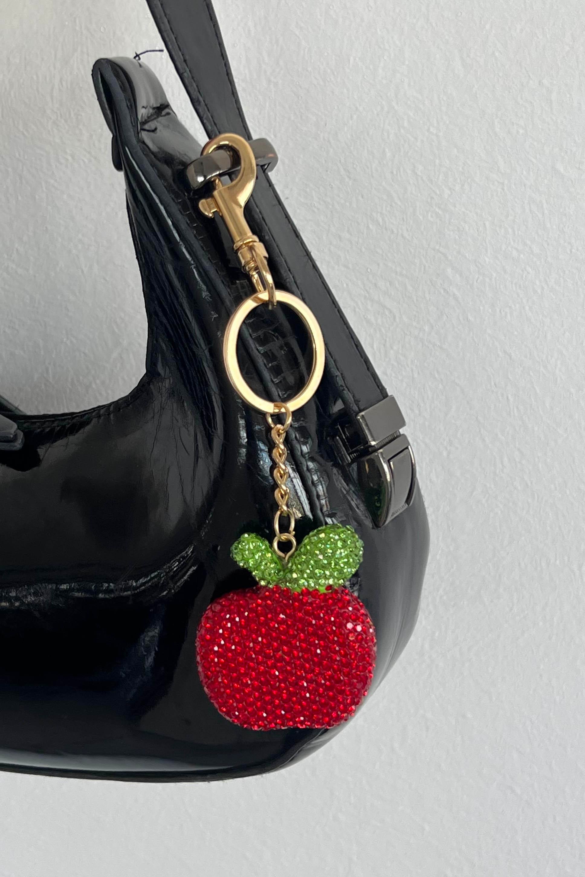 Altın Renk Elma Figürlü Kırmızı Taş Detaylı Çanta Charm/ Anahtarlık