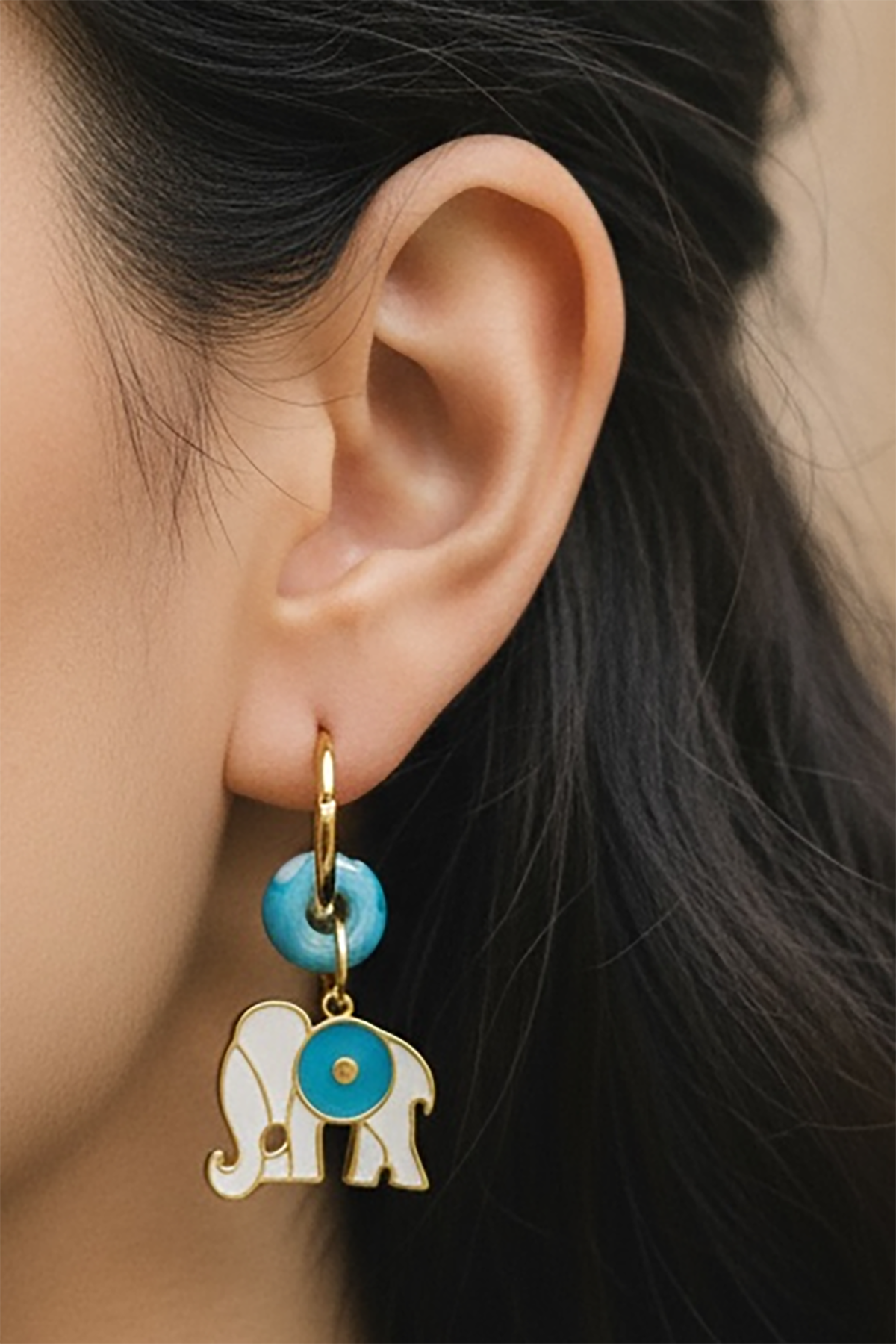 Altın Renk Fil Figürlü Çelik Küpe (Çift)