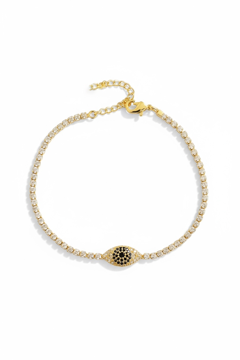 Altın Renk Göz Detaylı Taşlı 14K Altın Kaplama Tx Bileklik