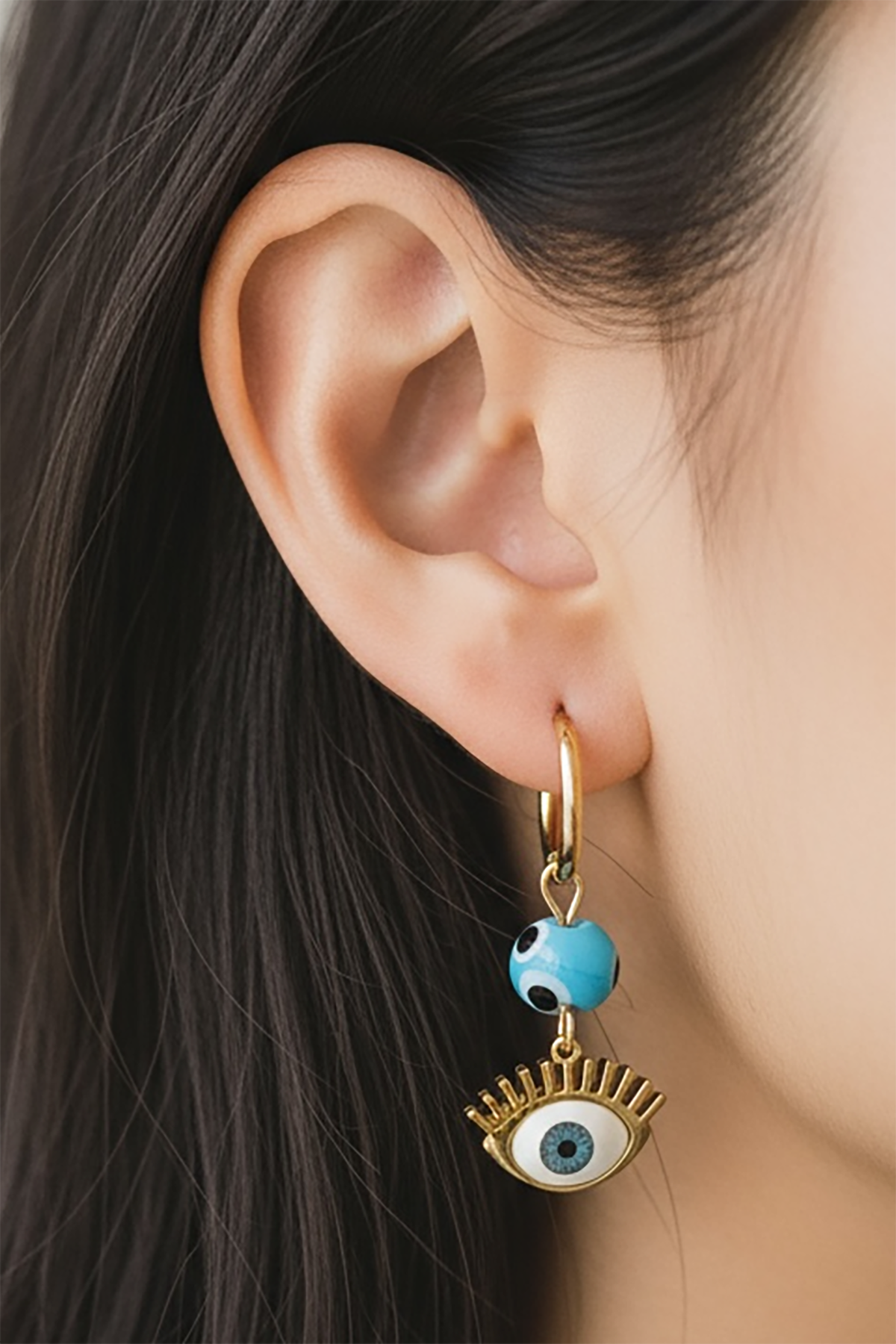 Altın Renk Göz Figürlü Çelik Küpe (Çift)