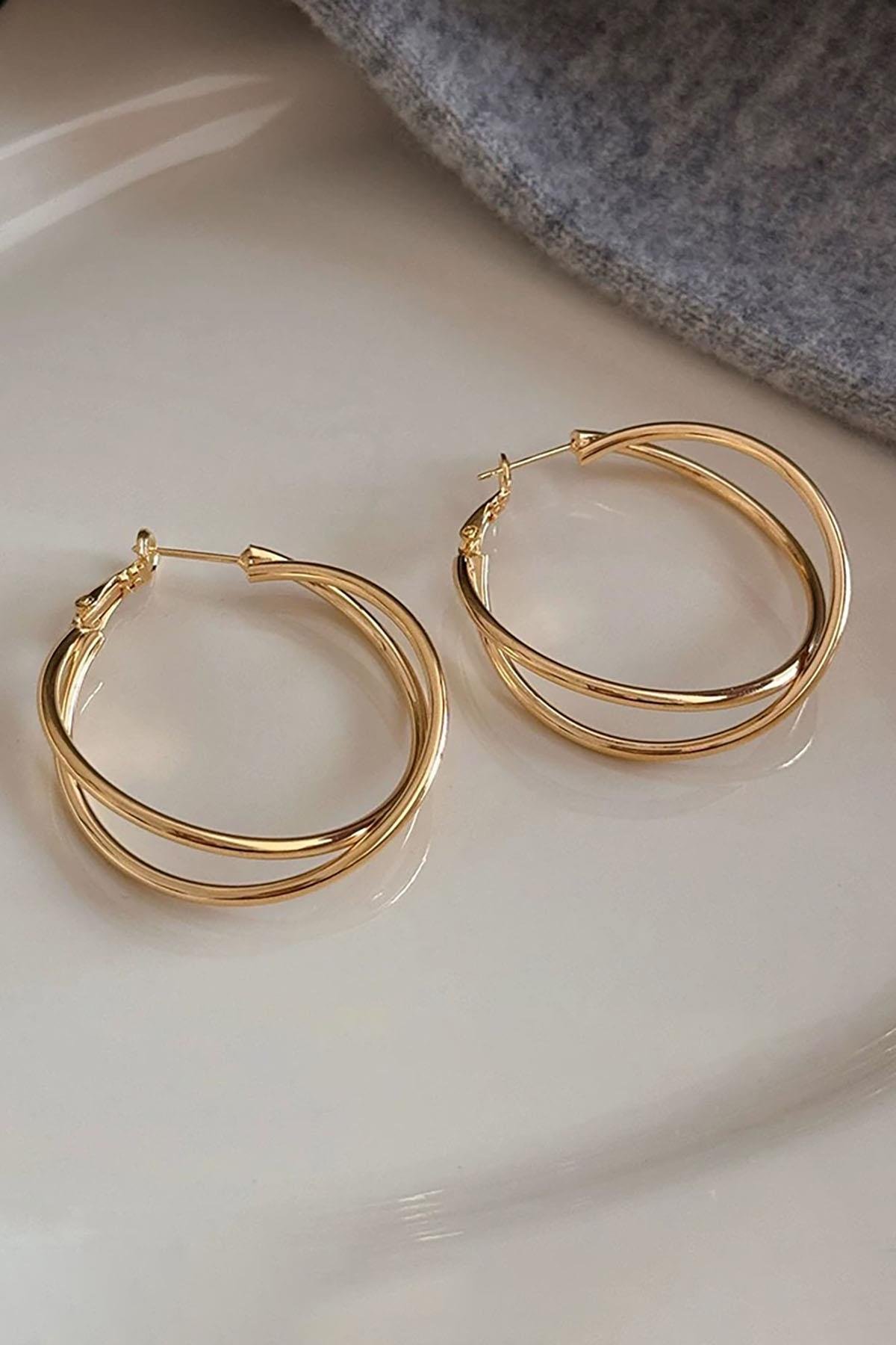 Altın Renk Halka Küpe (Çift)