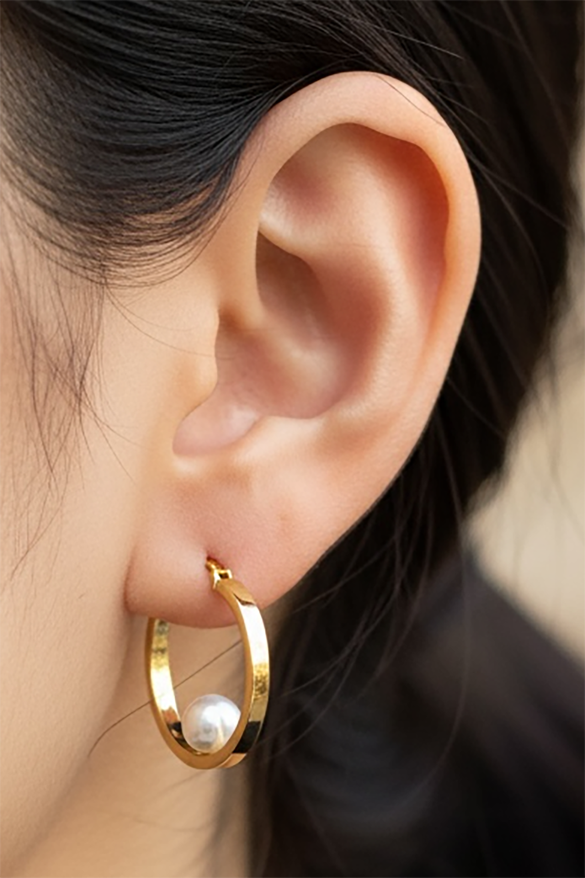 Altın Renk İnci Detaylı Çelik Halka Küpe (Çift)