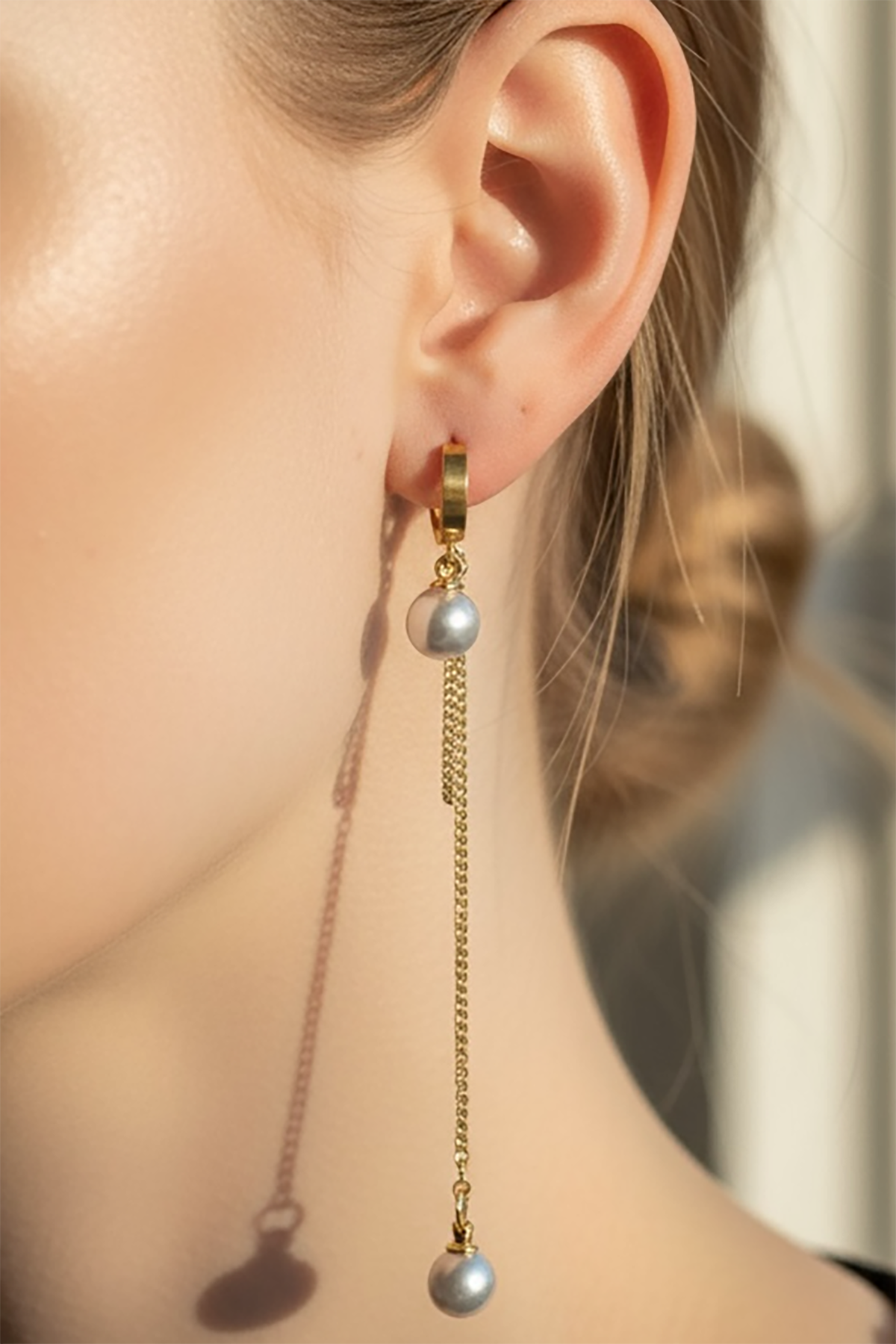 Altın Renk İnci Detaylı Çelik Küpe (Çift)