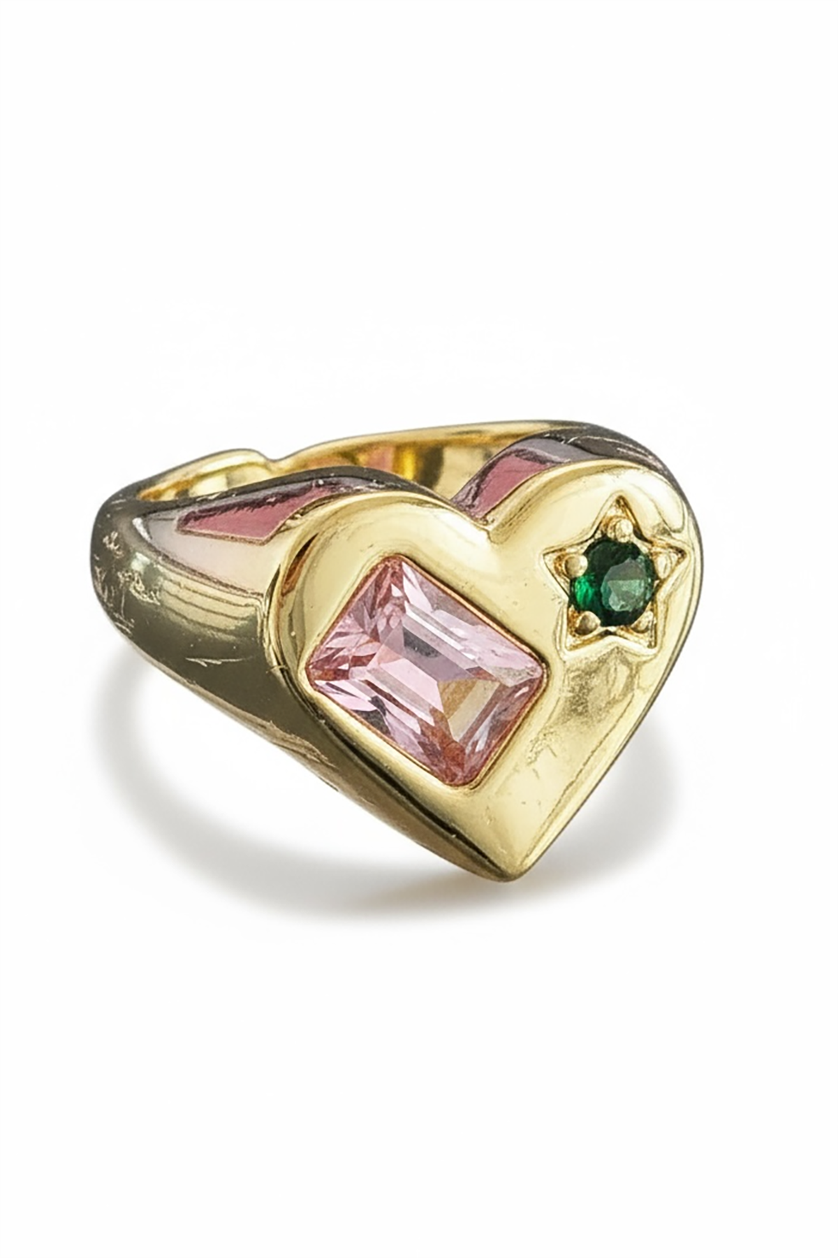 Altın Renk Kalp Figürlü Taş Detaylı Ayarlanabilir Yüzük