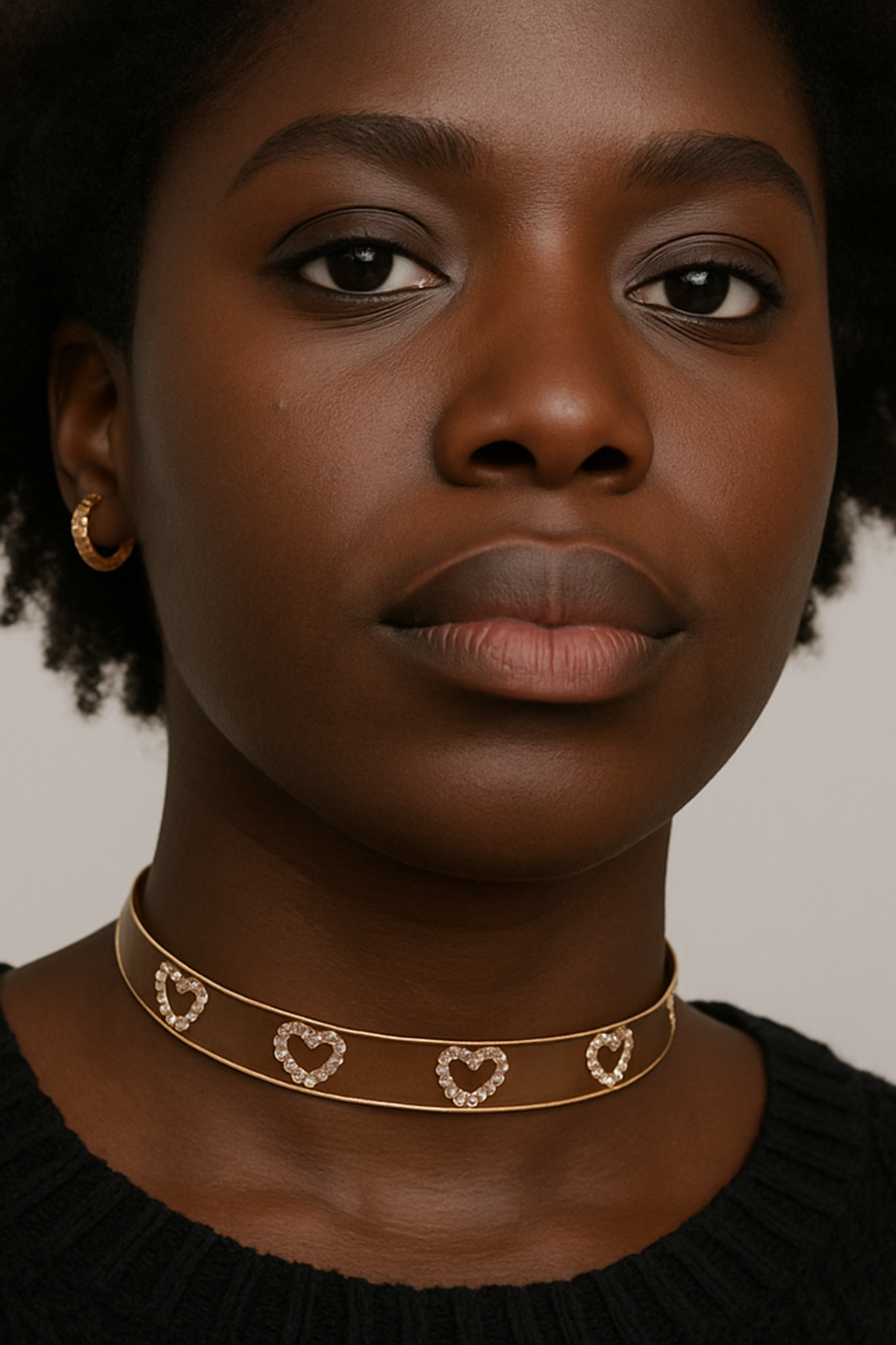 Altın Renk Kalp Figürlü Taş Detaylı Choker Kolye