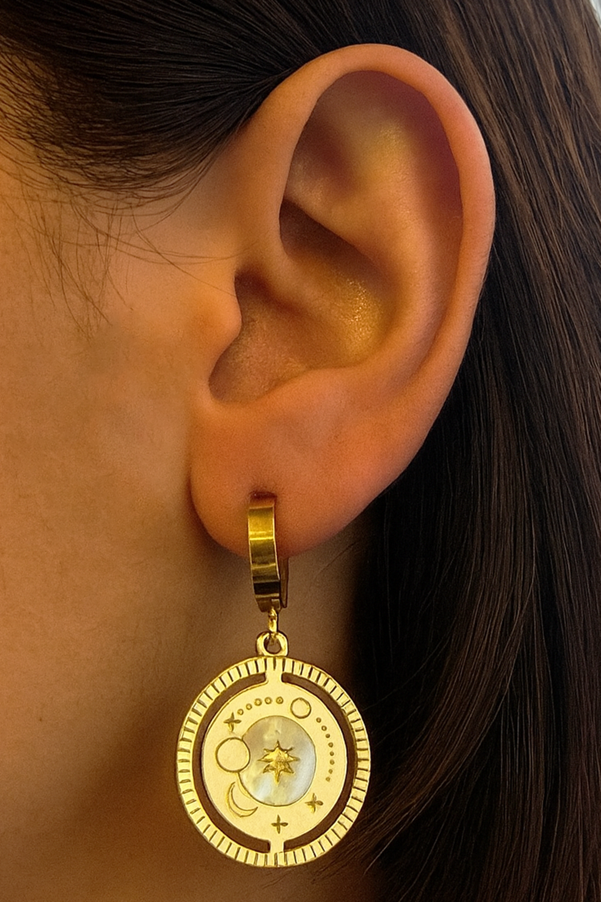 - Zarif tasarımıyla dikkat çeken bu çift küpe, altın rengi detaylarıyla göz alıcı bir görünüm sunar.
