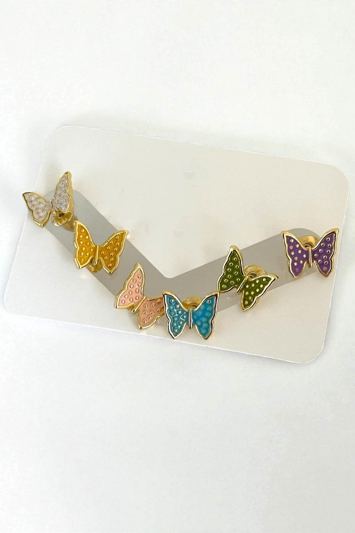 Altın Renk Kelebek Figürlü 6'lı Küpe Set