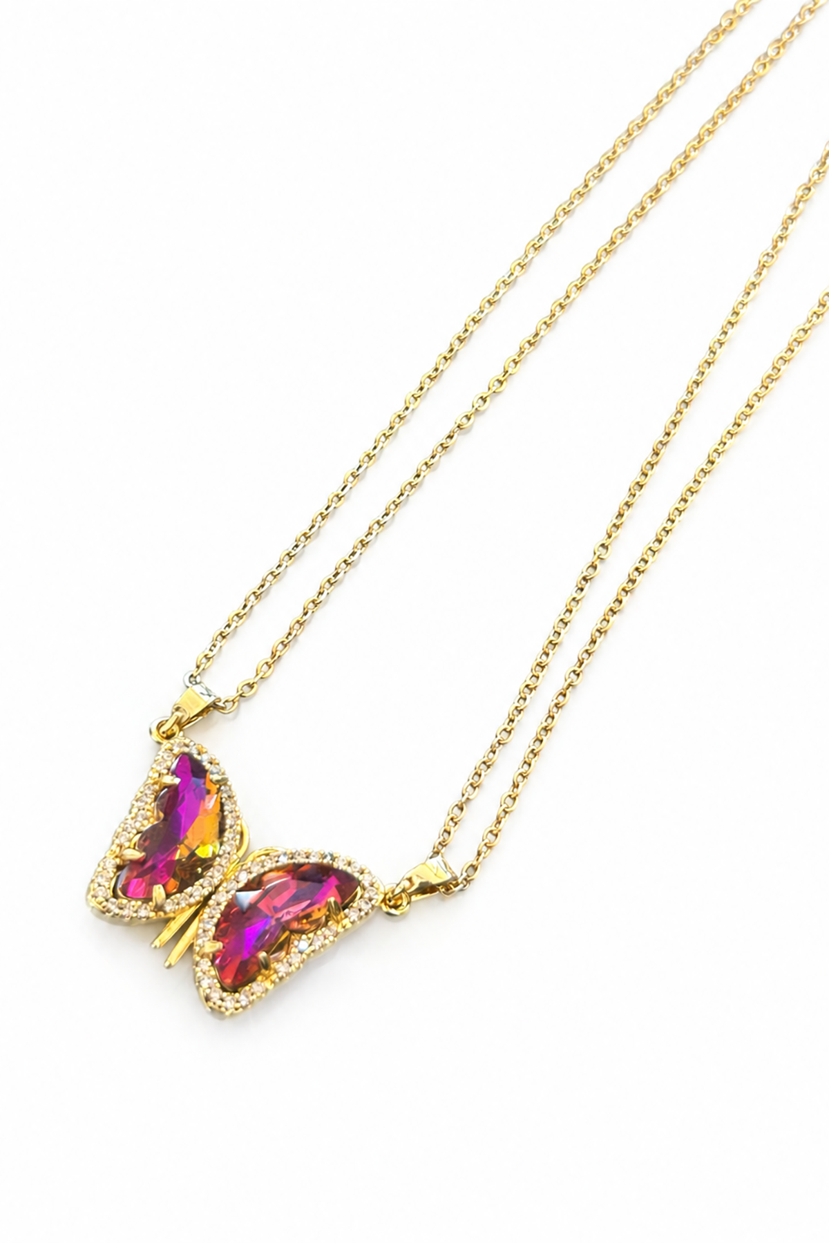 Altın Renk Kelebek Figürlü Taş Detaylı Mıknatıslı Çelik Arkadaşlık Kolyesi