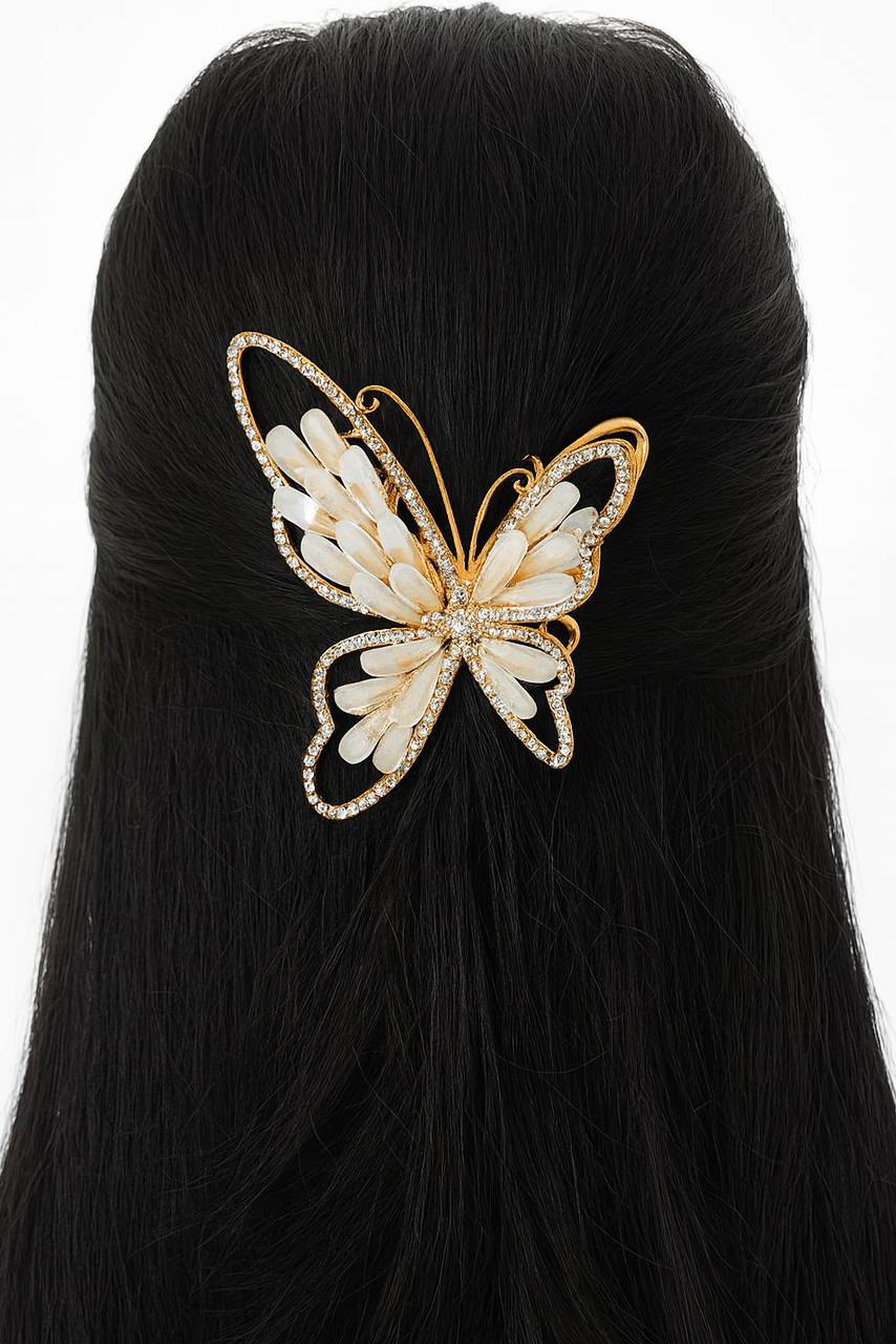 Altın Renk Kelebek Figürlü Taşlı Metal Mandal Toka