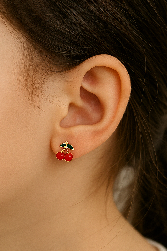 Altın Renk Kiraz Figürlü Çocuk Küpe (Çift)