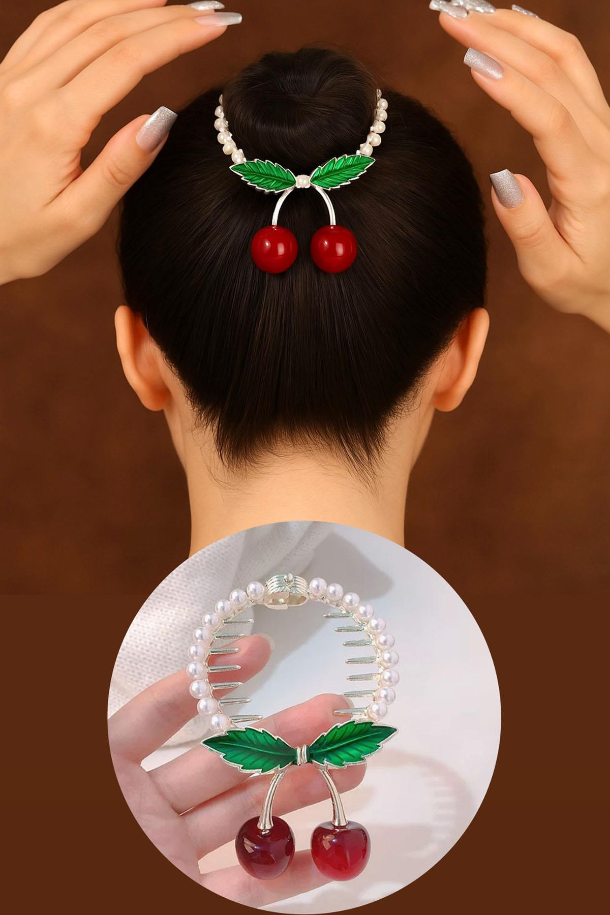Altın Renk Kiraz Figürlü İnci Detaylı Sallantılı Topuz Tokası