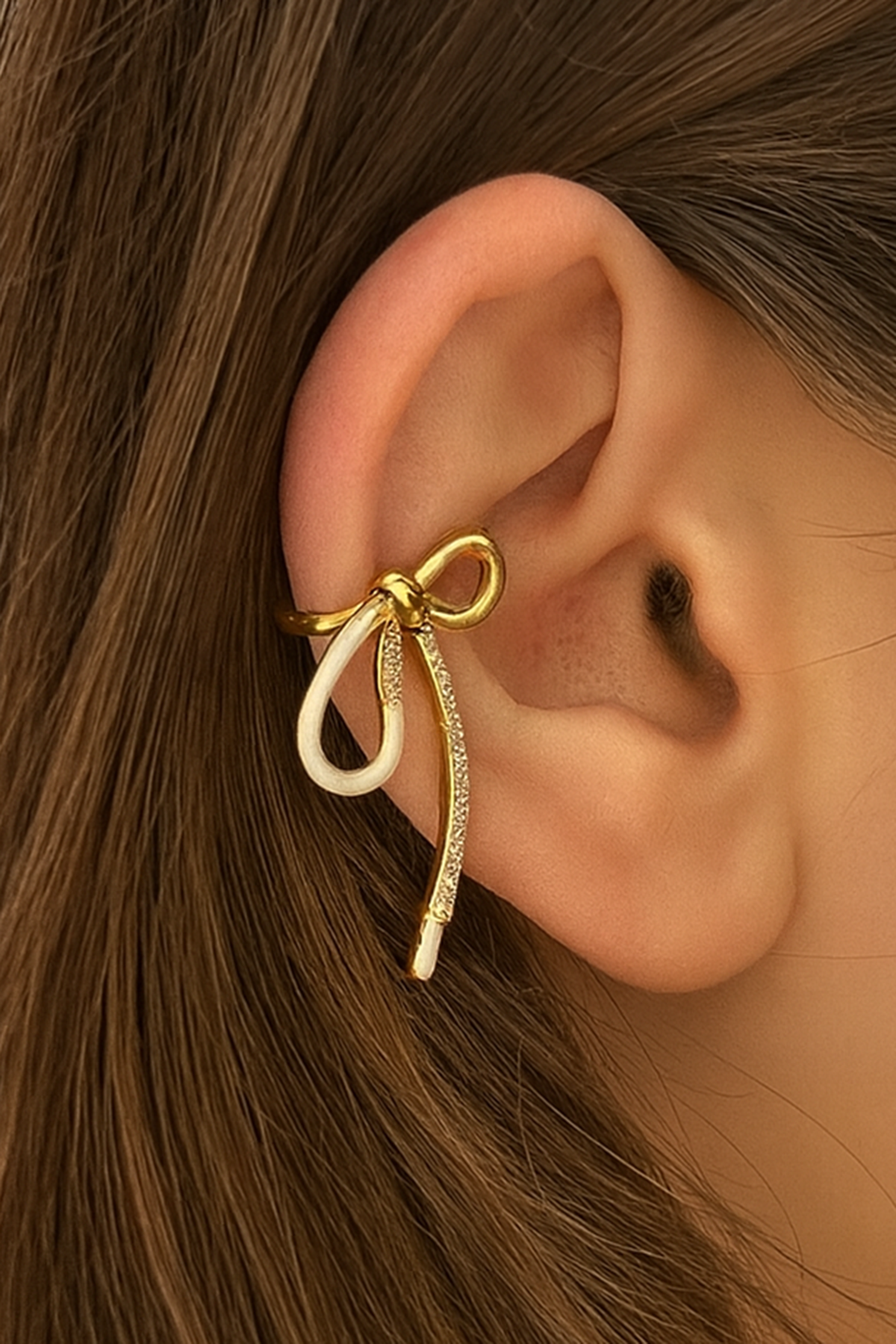 Altın Renk Kurdele Figürlü Taş Detaylı 14K Altın Kaplama TX Ear Cuff (Tek)