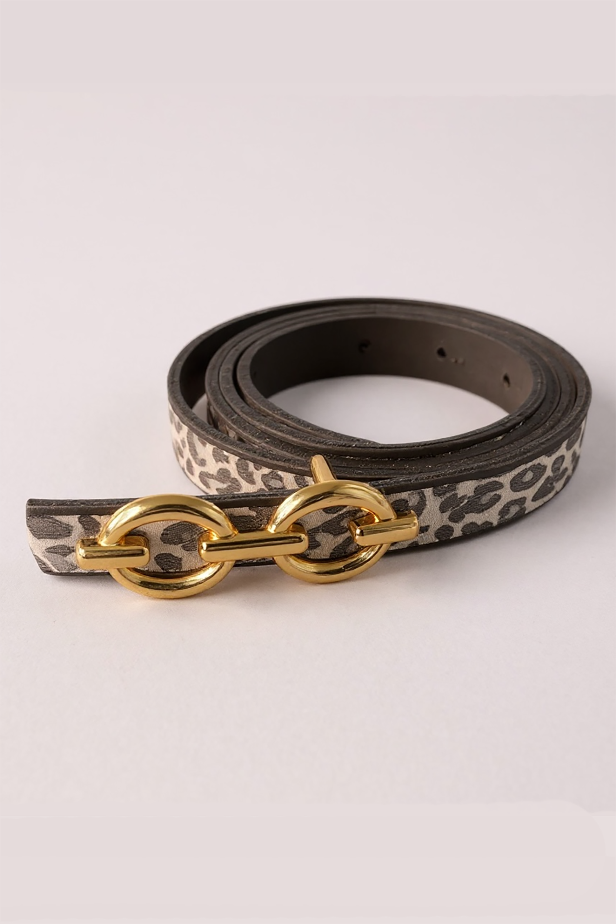 Altın Renk Leopar Desenli Kadın Deri Kemer