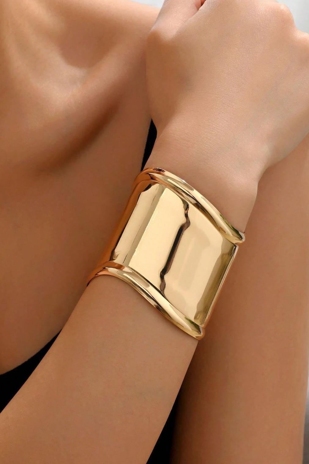 - Yetişkinler ve genç kızlar için uygun tasarımıyla herkesin zevkine hitap eden altın renk metal kelepçe bileklik.