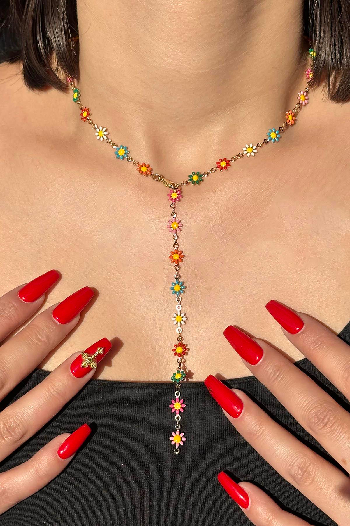 Altın Renk Papatya Figürlü Y Kolye
