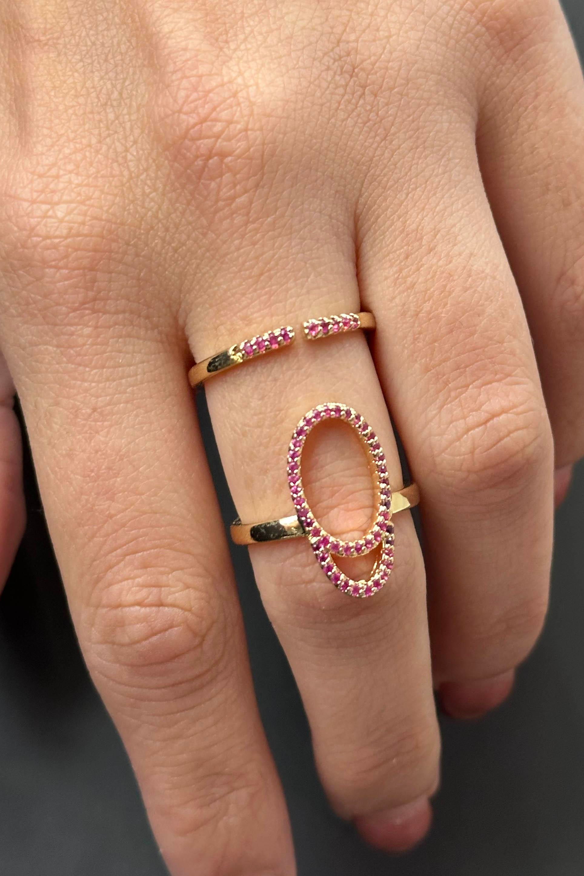 Altın Renk Pembe Taş Detaylı Ayarlanabilir Çelik Yüzük
