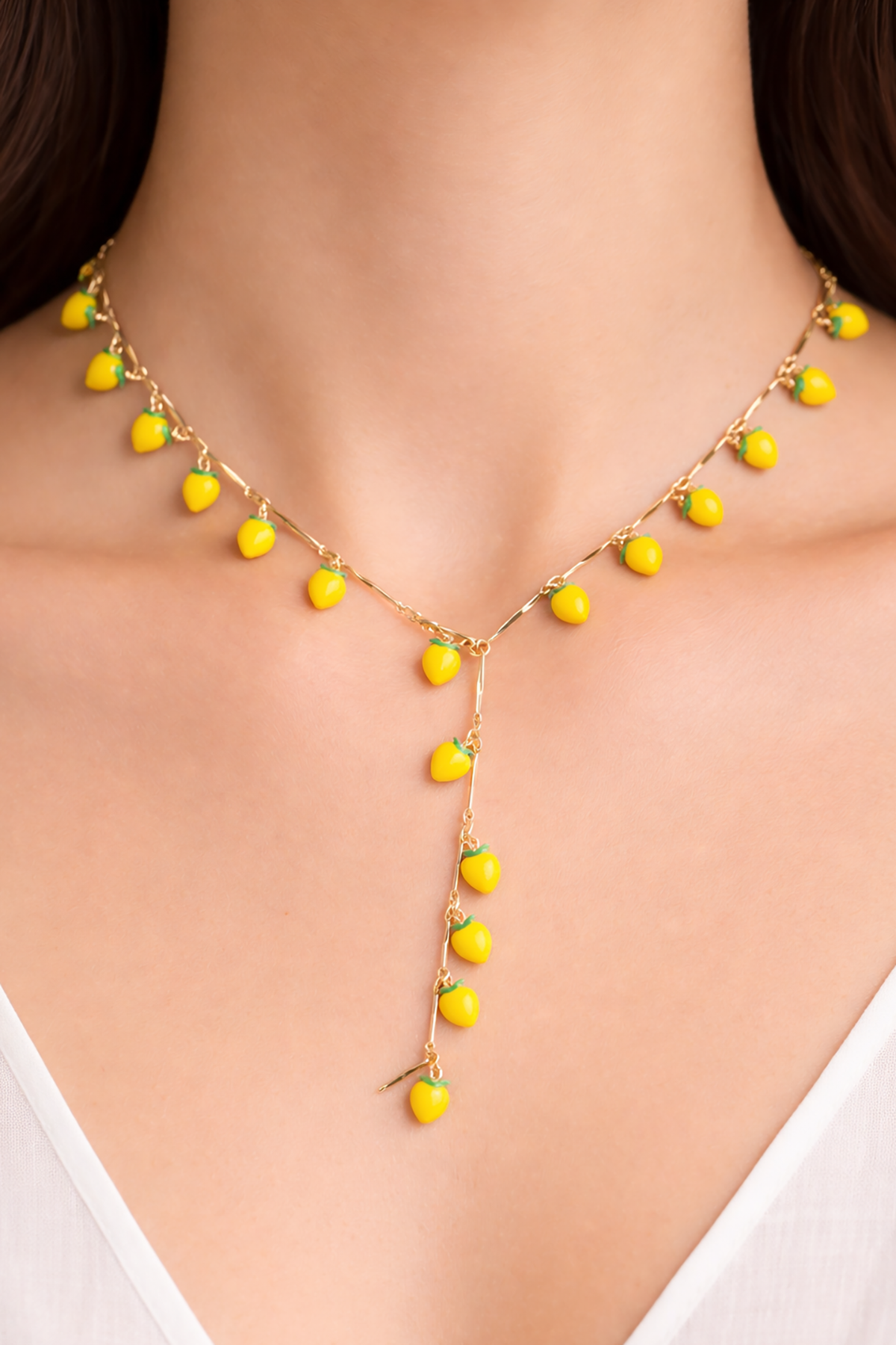 Altın Renk Sarı Kalp Figürlü Çelik Y Kolye
