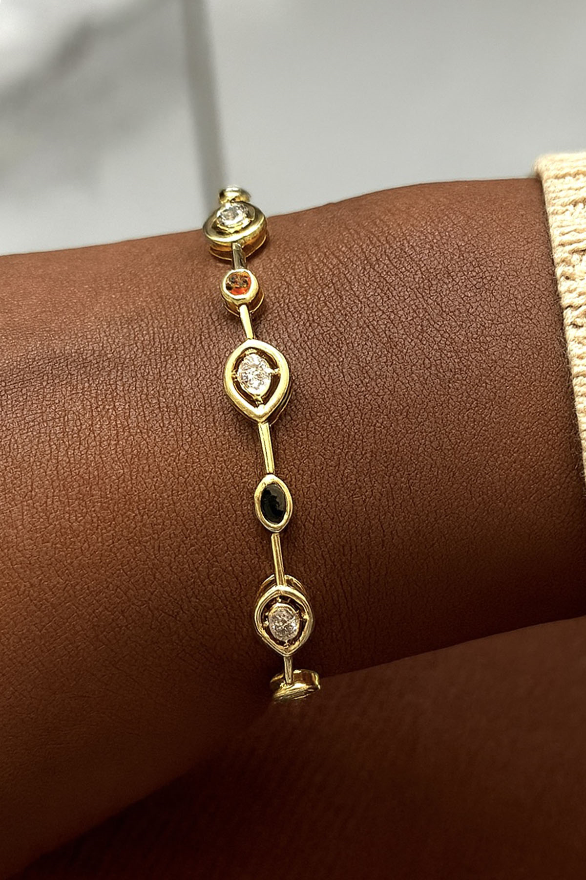 Altın Renk Taş Detaylı 14K Altın Kaplama  Bileklik